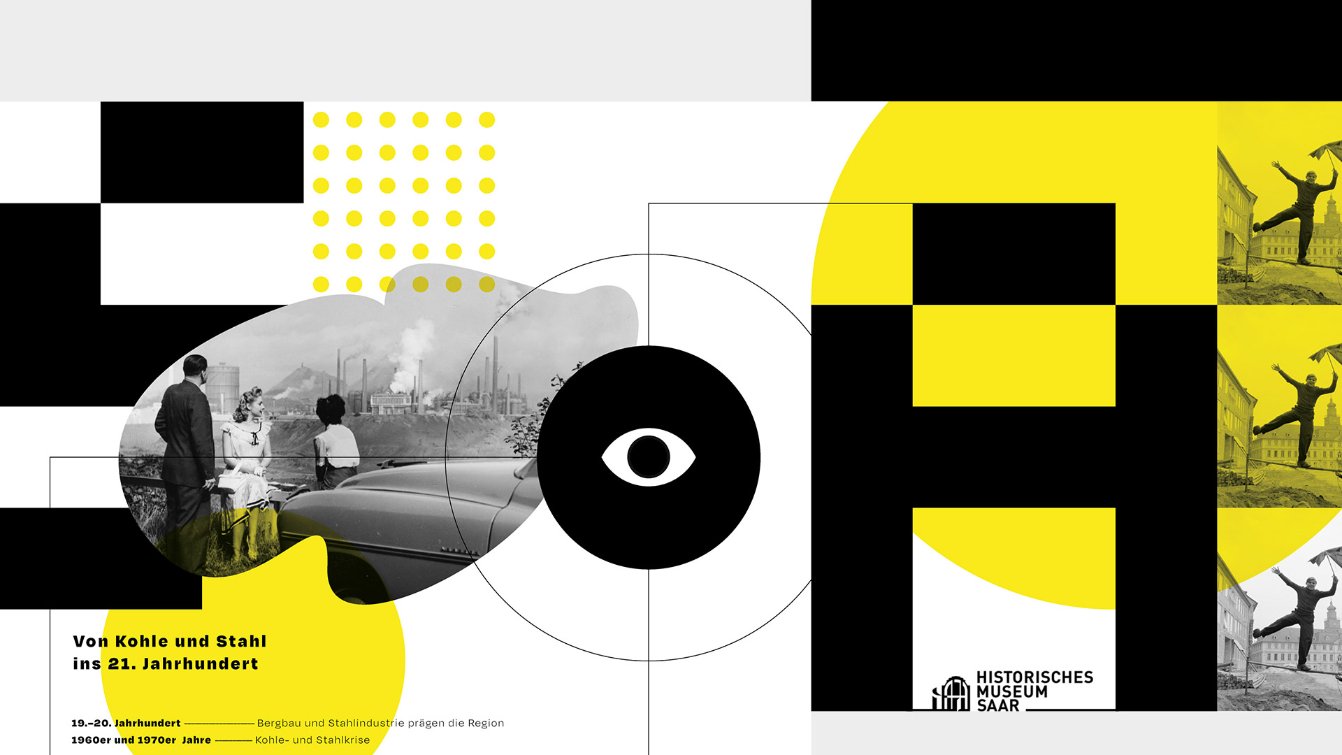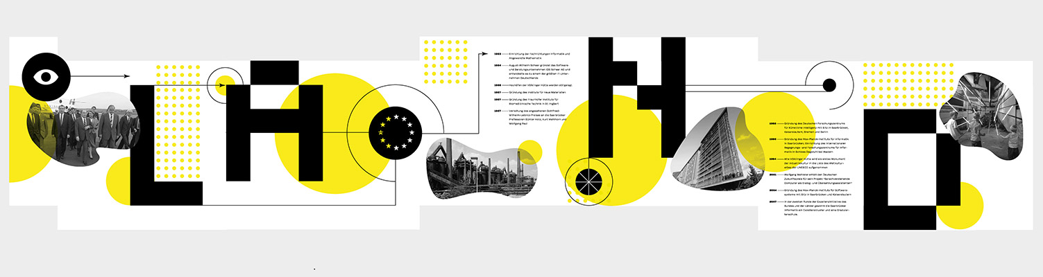 Anlässlich der Eröffnung des ersten dauerhaften „virtuellen Museums im Musem“ des Historischen Museums Saar durch Ministerpräsident Tobias Hans, entstand eine fast 15 Meter lange, umlaufende Grafik zur Geschichte der Industrialisierung im Saarland.